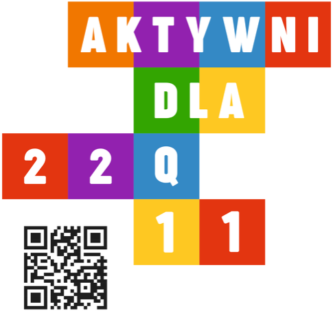 Charakterystyczny nadruk w formie kolorowych klocków i kod QR nie tylko przyciąga uwagę, ale także kieruje bezpośrednio do strony akcji.